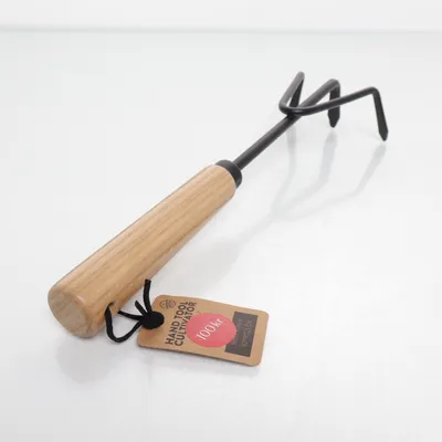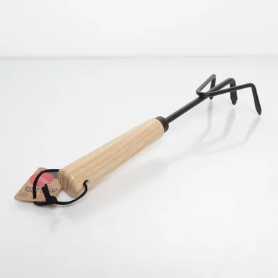 Hand kratta räfsa för rabatter, rostfri i trä och läder